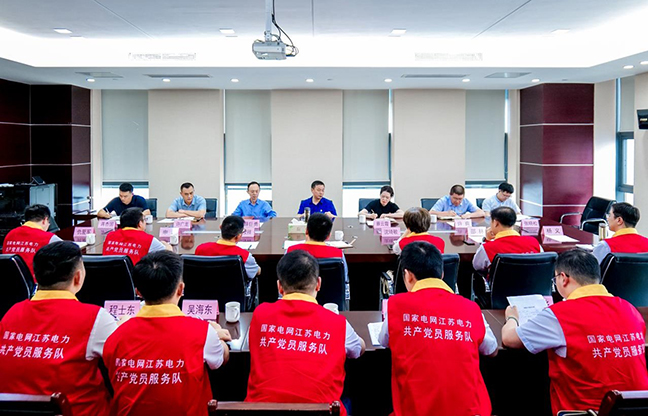 6月19日下午,由國網(wǎng)鹽城供電公司發(fā)展部、建設(shè)部、物資部、項目管理中心等四個支部組成的共產(chǎn)黨員服務(wù)隊來到鹽城國能公司,就服務(wù)新能源高效接網(wǎng)開展現(xiàn)場咨詢活動。鹽城國投集團黨委委員、國能公司總經(jīng)理仲明熱情接待,國能公司、清能公司相關(guān)負責人參加活動。